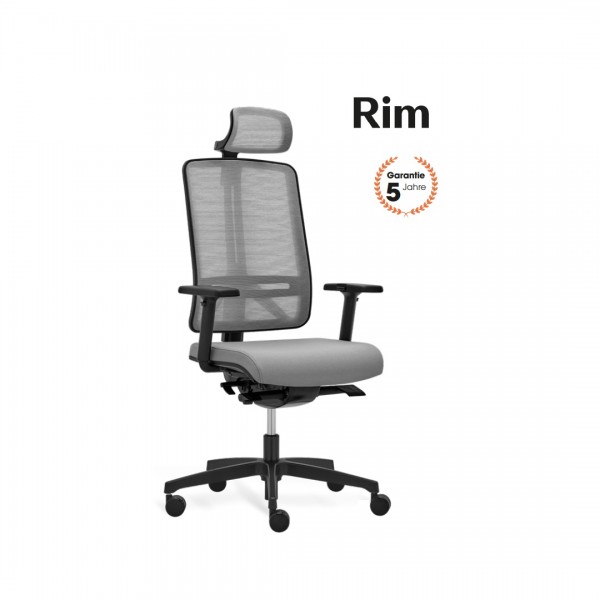 - Nackenstütze: Höhenverstellbar und neigbar, mit luftdurchlässigem Netz RIB 432 (grau) bespannt.